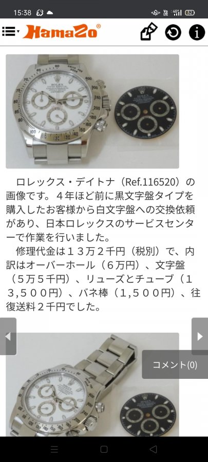 黒(インダイアル黄色)→黒(インダイアル銀色)の交換は日ロレで行うことは可能ですか?
